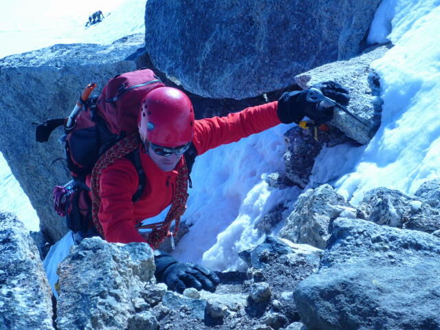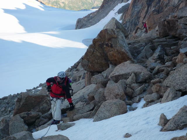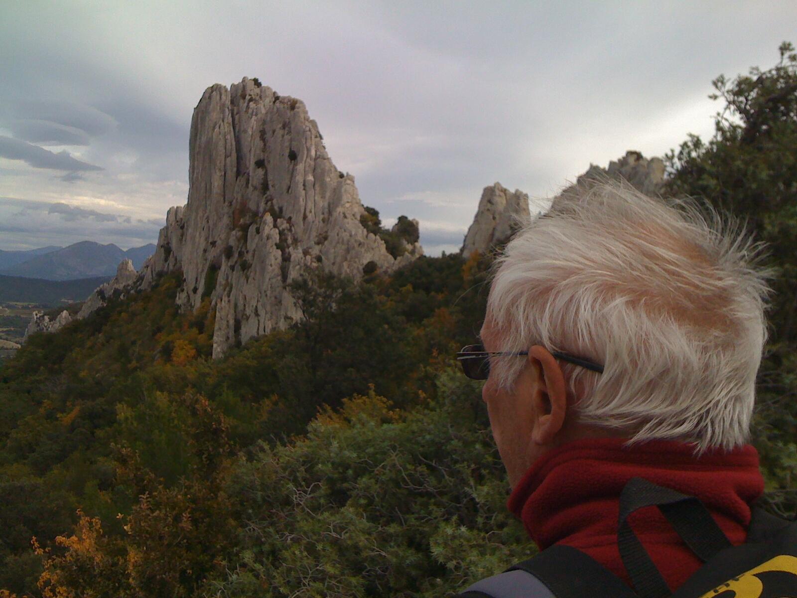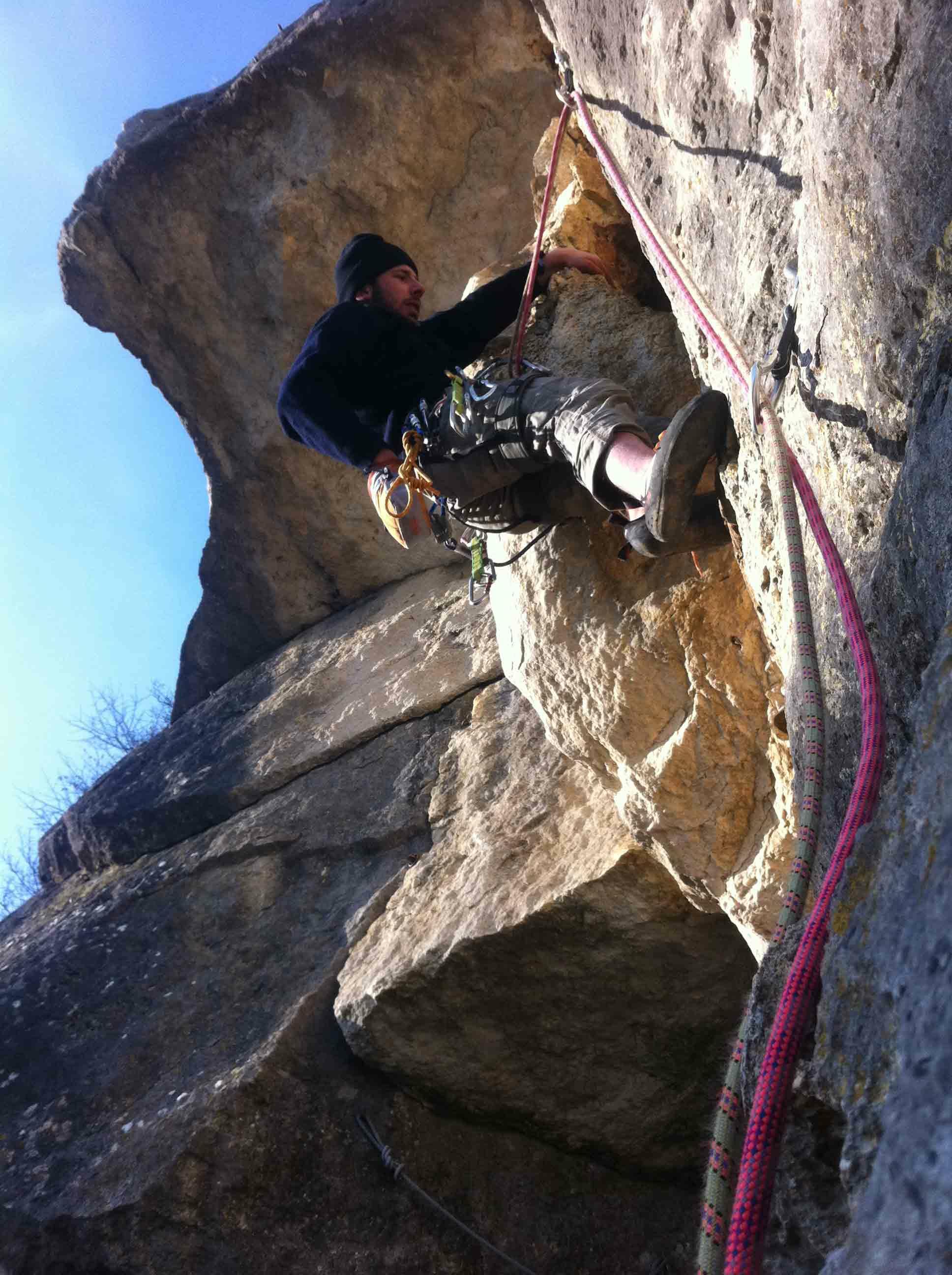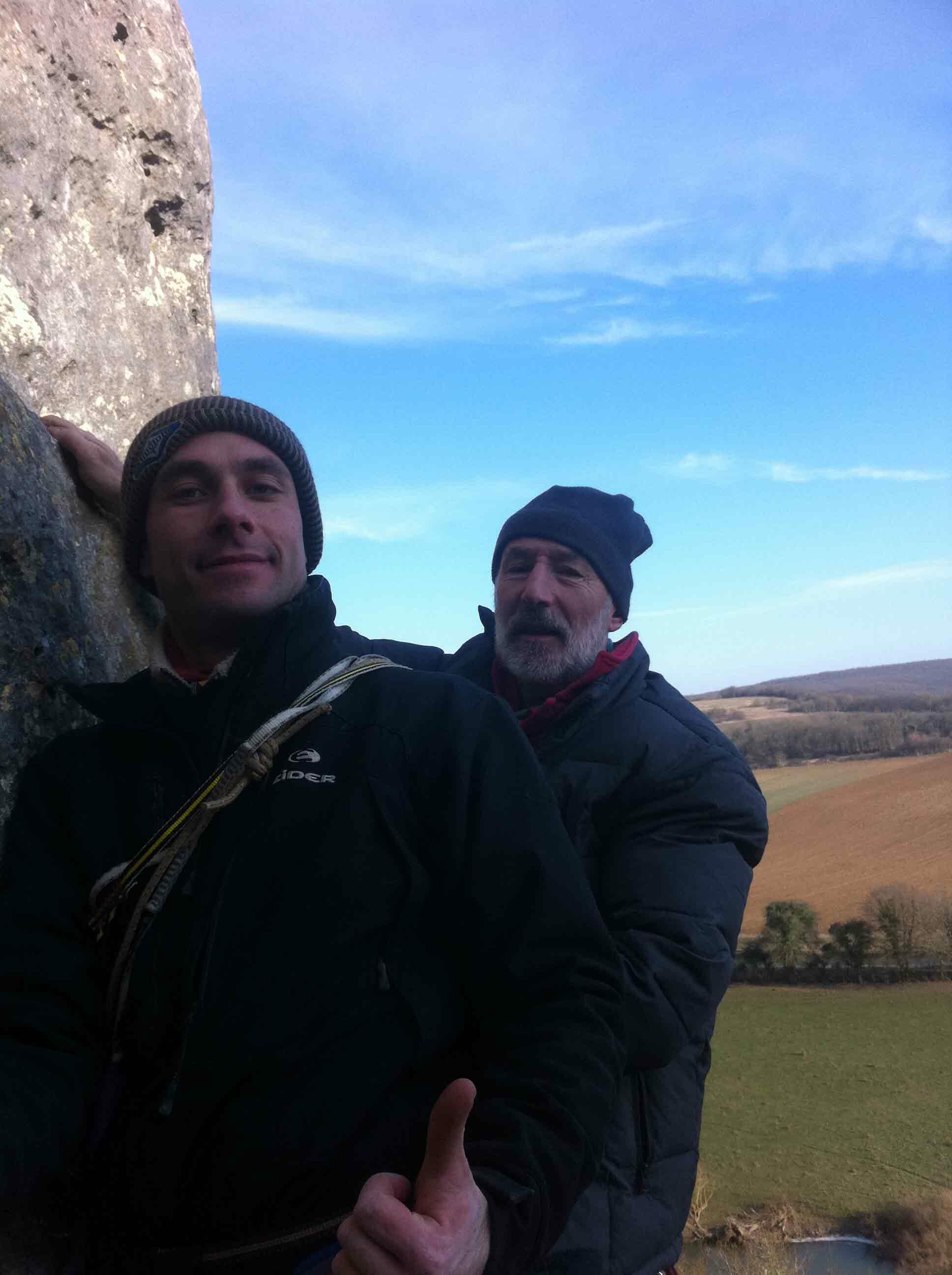Le nid sur une terrasse à 2m de relai de la voie la plus fréquentée (nous évitons d'y grimper maintenant pendant la nidification)